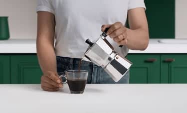 موکاپات را از روی شعله بردارید و قهوهی تازه و غلیظ خود را در فنجان بریزید.